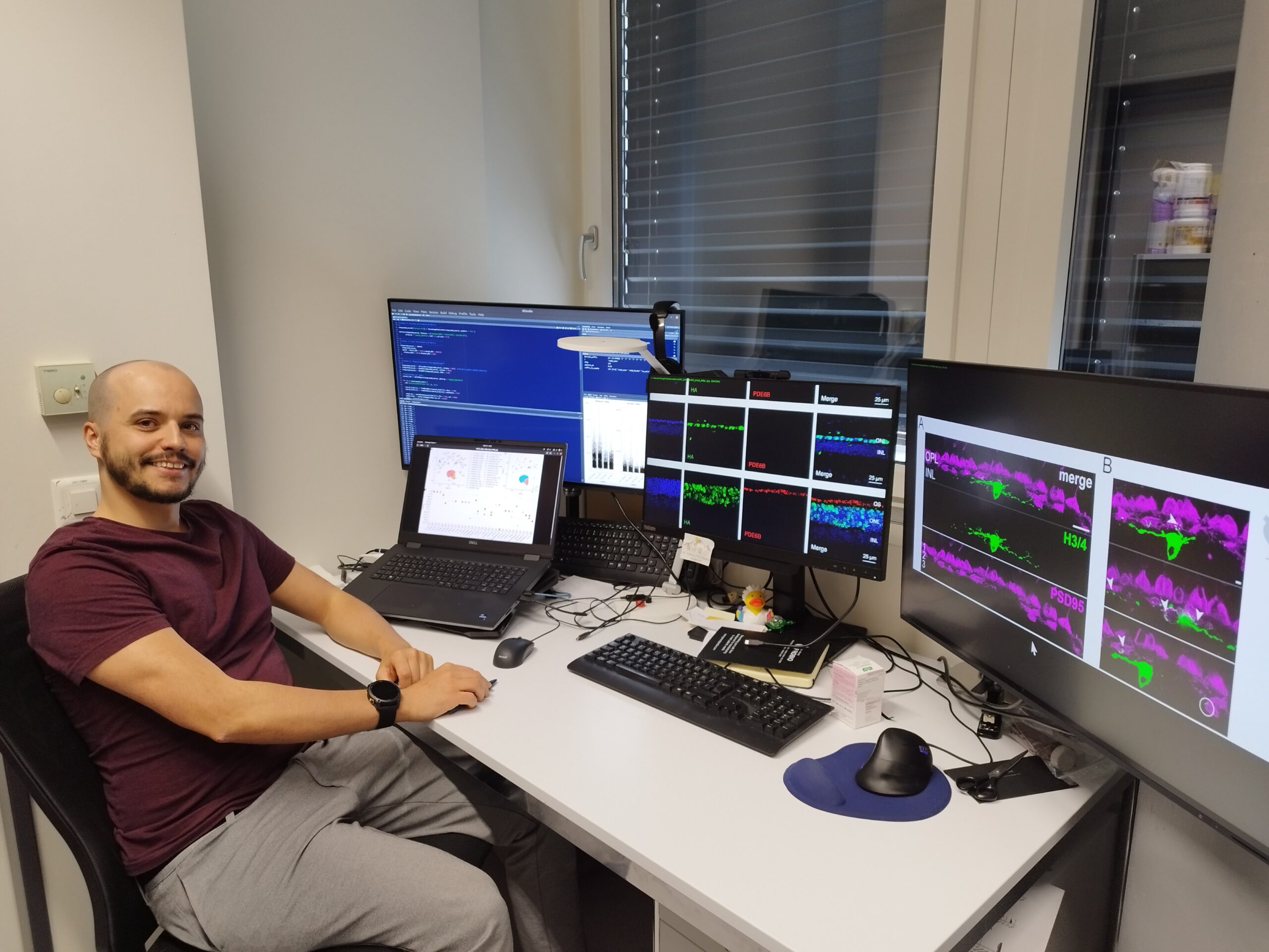 TH: Mi sono creato un contesto sociale che mi aiuta quando necessito di sostegno, sia di notte che in luoghi bui, come per esempio i bar. Ho anche adattato il mio percorso professionale: poiché il lavoro in laboratorio si è rivelato sempre più difficile nel mio caso, sono passato dalla biologia molecolare alla bioinformatica, al fine di poter rimanere attivo nella ricerca. In qualità di bioinformatico posso lavorare in un ambiente scientifico più a lungo, grazie all’impiego di appositi strumenti ausiliari.